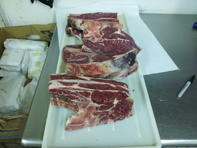 Among the cuts not pictured: flank steaks, skirt steaks, eye round roasts, sirloin tip roasts, top round roasts and steaks, chuck eyes, London broils, cube steaks and probably a few others I am forgetting at the moment. When we were done, two chest freezers (one of the chest freezers is huge the other is a normal size) and the freezer of a side-by-side refrigerator were completely filled with beef.