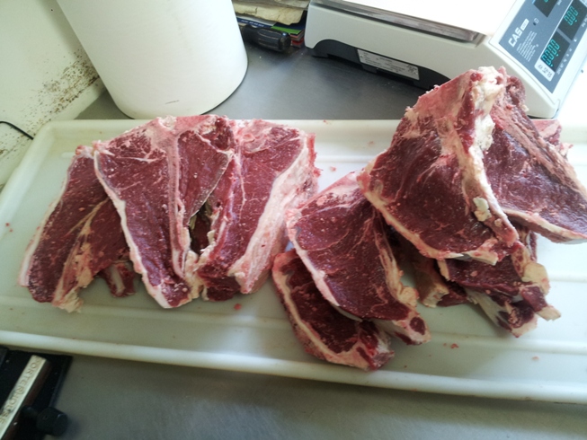 Large chuck roasts. Good for stews and pot roast. And if I run out of ground beef, I grind it myself.