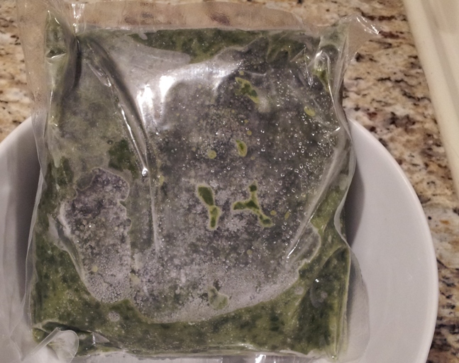 Sure it is highly processed and has lots of ingredients it shouldn't, but I loved this stuff. Back in the pre-microwave days, you'd simmer the frozen ice-cube pouch of creamed spinach in water. I just nuked it.