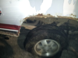 The smell is not good and there were people just sitting in the smoke. Here's what a completely destroyed tire looks like.
