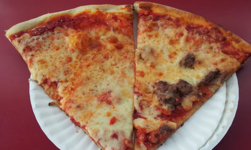 Alright, no doubt I'm being a pizza snob, but an honest snob. Here's the pizza a got at DC's slice of cheese and a slice of sausage.