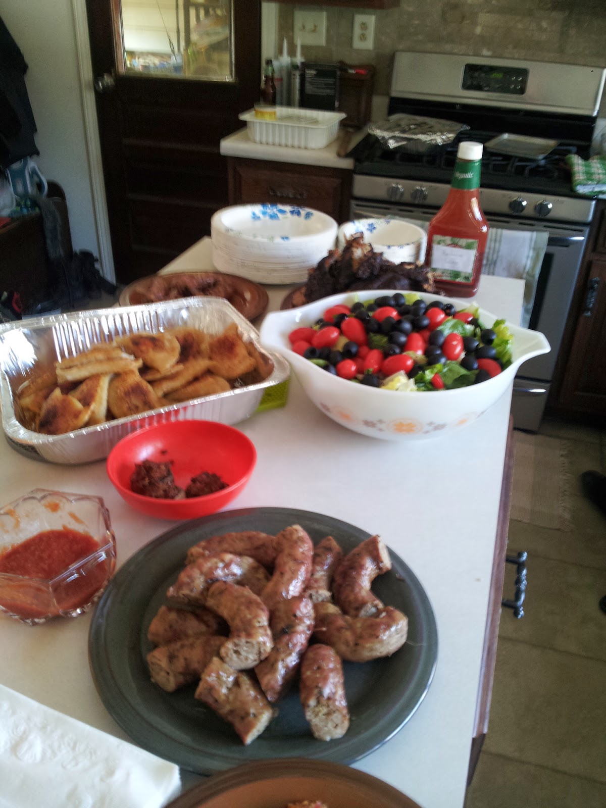 There were ribs and pierogi, sausage, salad, deviled eggs and potato salad (my mother-in-law makes a superior tater salad).