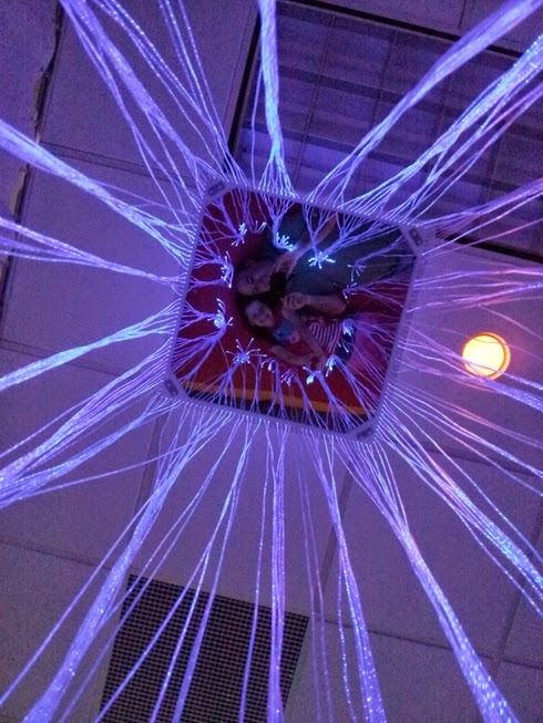 They also have a something that I could only describe as a calming room. If a kid is all worked up and needs to be away from it all for a few minutes, there's padded seats and lots of calming lights that are just relaxing. Here's me and Casey lying down on a a mat looking up at the lights and our reflection.
